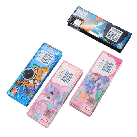Creativo doppio uso astuccio calcolatrice cartone animato multifunzionale grande capacità doppio strato penna scatola portaoggetti astronauti carino